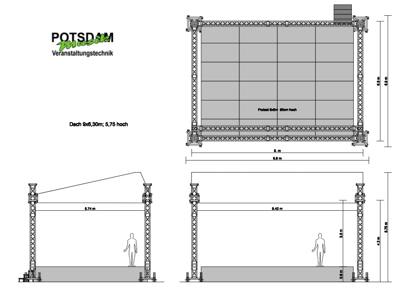 GS58: 9x6,5m Hubdachbühne, bis 5,50m Höhe